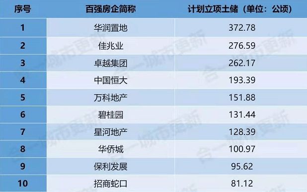 據(jù)合一城市更新統(tǒng)計數(shù)據(jù),深圳已確認實施主體的舊改土地中,萬科占據(jù)了109.94公頃,計劃立項土儲則為151.88公頃