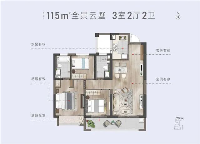金領·蠡洲臺在售的建面約115㎡的高層戶型,南向6.8米超寬雙陽臺設計,主臥套房設計, 南向三開間超10米面寬 ,大面積采光度充分保障了室內(nèi)整體采光和通風優(yōu)越。