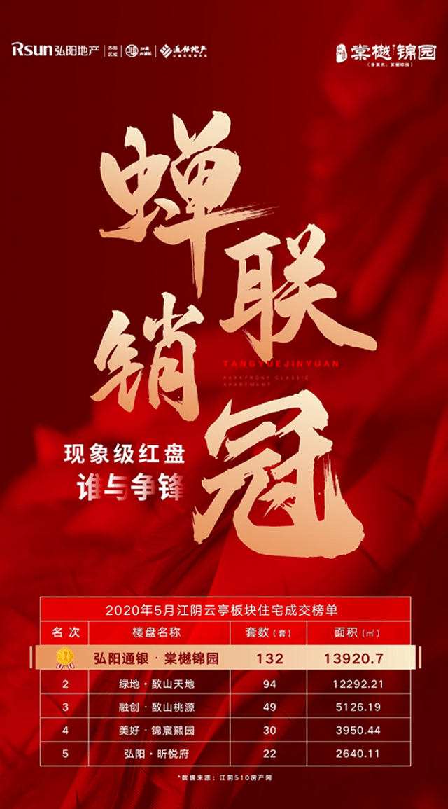 自2019年12月首開(kāi)以來(lái),弘陽(yáng)通銀·棠樾錦園便成為江陰當(dāng)仁不讓的流量紅盤,更在2020年榮膺1-5月江陰云亭板塊銷售套數(shù)和面積雙冠王的榮耀,在全市銷售套數(shù)位列TOP4!逢推必火,冠譽(yù)全澄,歸根究底源于棠樾錦園的硬核產(chǎn)品力。