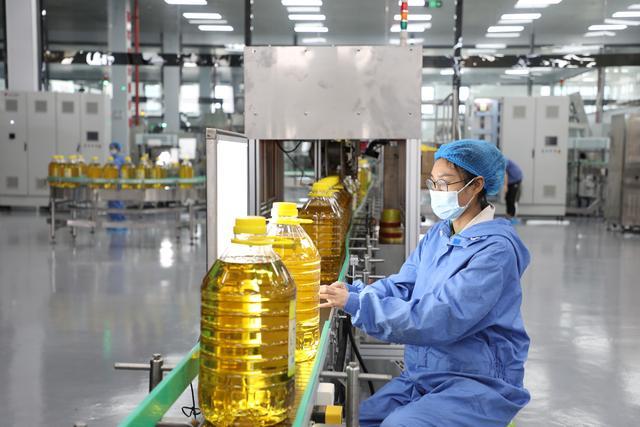 圖為海南澳斯卡國際糧油有限公司智能化包裝車間,工作人員對包裝油進(jìn)行質(zhì)量檢查。(黎多江 攝)