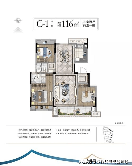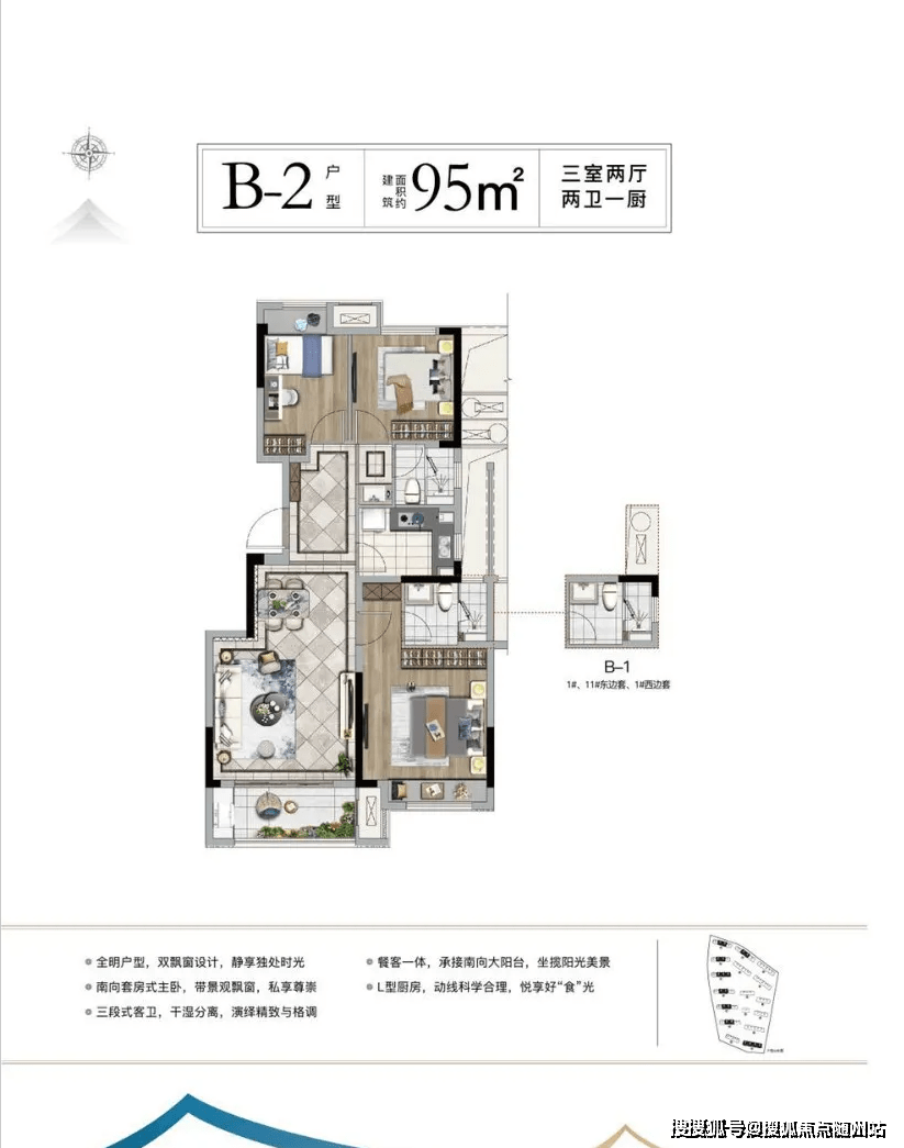 目前在售 95平3房2衛(wèi)3開間朝南2/3單元2開間朝南,