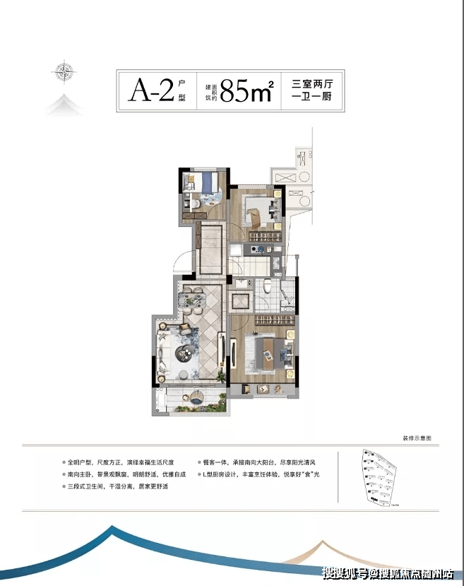 85平3房一衛(wèi)2開間朝南,1梯2戶總高11層
