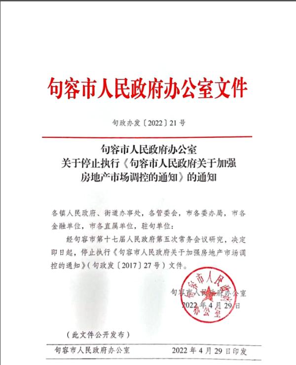 句容市住建局相關(guān)人士告訴澎湃新聞,5月4日,市相關(guān)部門組織召開房地產(chǎn)良性發(fā)展和健康發(fā)展座談會,部分房地產(chǎn)開發(fā)企業(yè)、中介機(jī)構(gòu)負(fù)責(zé)人與會。座談會宣布,停止執(zhí)行《關(guān)于加強(qiáng)房地產(chǎn)市場調(diào)控的通知句政發(fā)〔2017〕27號》,全面取消外地戶籍限購;全面執(zhí)行4月29日開始的鎮(zhèn)江樓市新政。