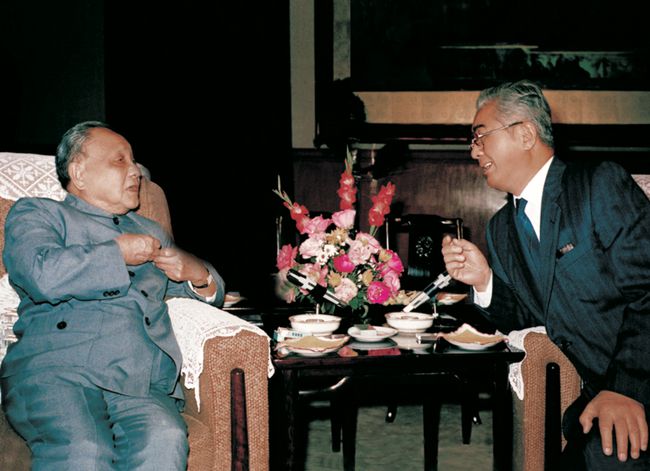 鄧小平、榮毅仁合影,圖據(jù)中信城開提供