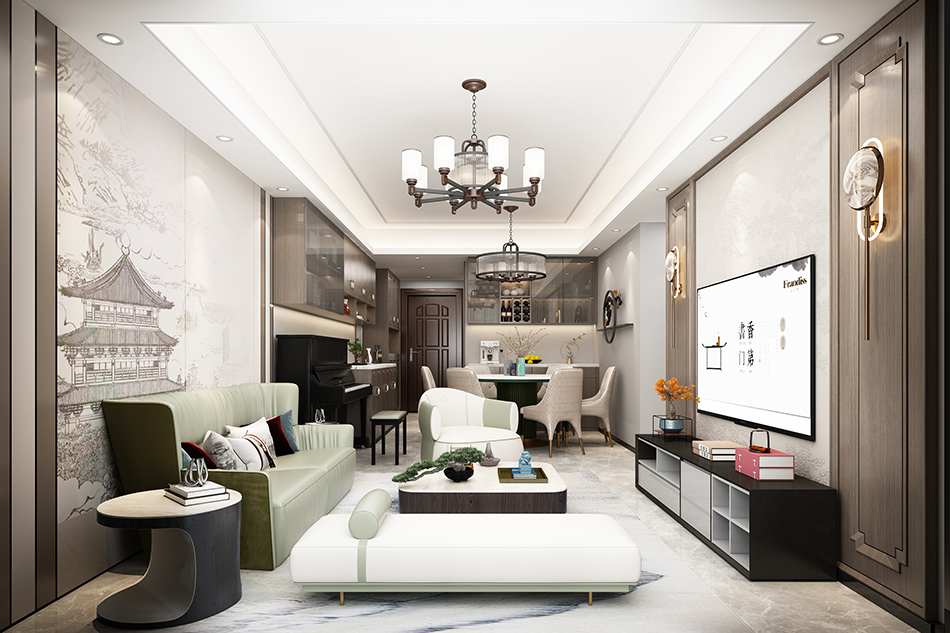 寶億萊軟裝案例:河北滄州頤和尚城130平戶型樣板間