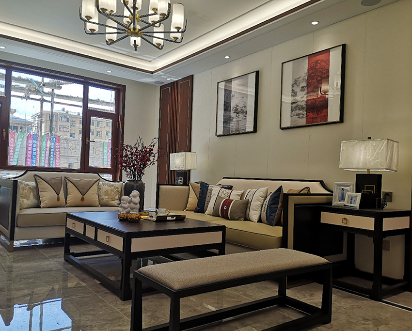 寶億萊軟裝案例:鄂爾多斯蒙清園北府國潮風143樣板間
