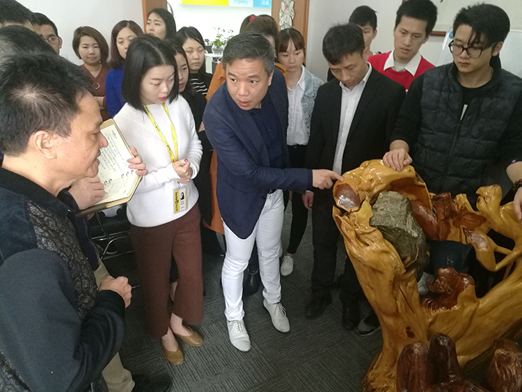 3月18日,福建省花卉協(xié)會根藝專業(yè)委員會副會長陳志明先生到訪寶億萊,并高興地現(xiàn)場指導(dǎo)寶億萊軟裝設(shè)計(jì)師們學(xué)習(xí)傳統(tǒng)根雕藝術(shù)。