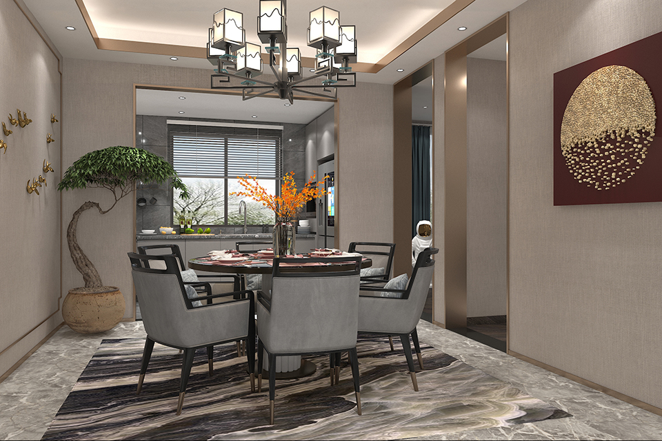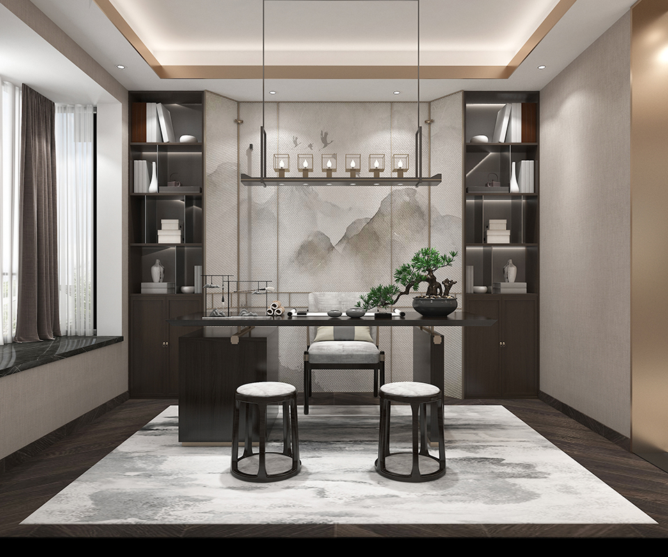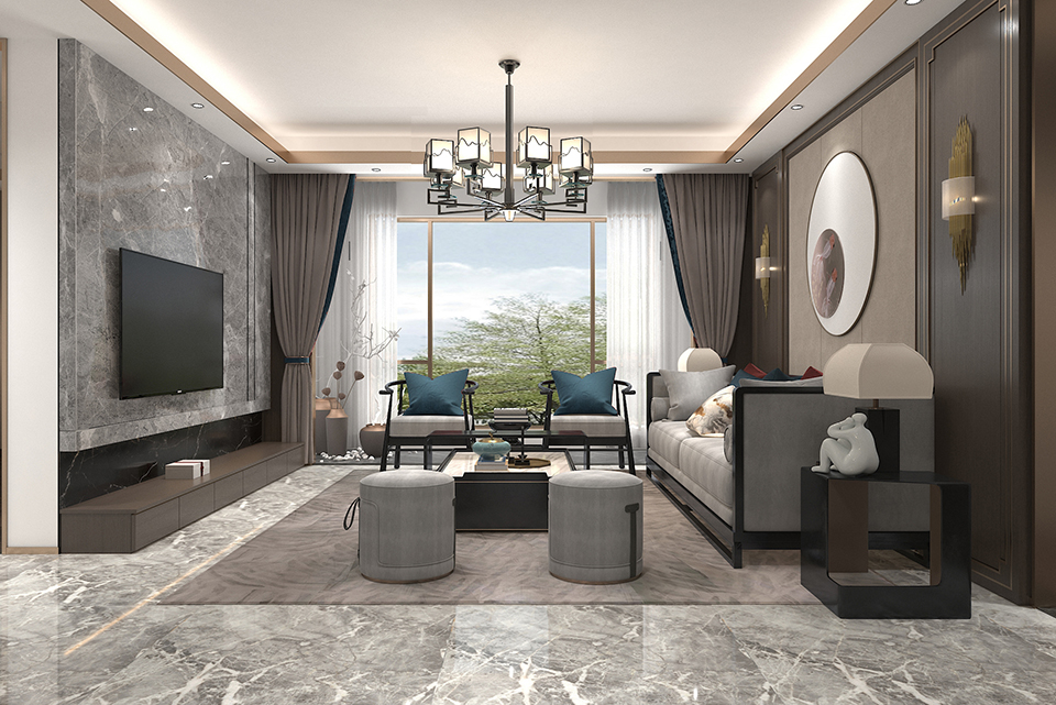 寶億萊軟裝案例:山東淄博青藍(lán)府A戶型140平新中式樣板房