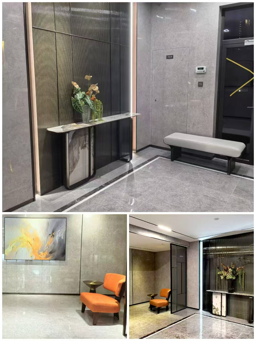 - 品質(zhì)細節(jié):社區(qū)內(nèi)部有入戶門頂梁下掛工藝、地面工藝測量精準至毫米級、隱藏式管道布局等,公區(qū)采用干區(qū)粉刷石膏抹灰工藝,配備門禁系統(tǒng),雙酒店式臻裝入戶大堂和高定星空頂?shù)貛臁?br />