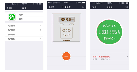 據(jù)悉,SUNMESH智能家居是集無線電通信技術(shù)、嵌入式系統(tǒng)及超低功耗技術(shù)于一體的智能化系統(tǒng)。所有的產(chǎn)品均為86盒形態(tài),內(nèi)嵌式傳感器實(shí)現(xiàn)設(shè)備的無線安裝、互聯(lián)互通。APP軟件使用人性化處理、扁平化設(shè)計(jì),簡單易用。