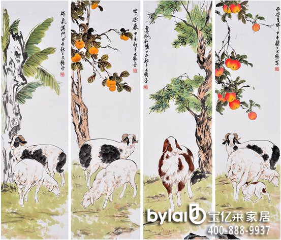 家居墻面裝飾畫舉例解析:羊,即祥也。古代宮廷中小車多稱羊車,即取意吉祥。人們常說的“三羊開泰”為吉祥話之一。比如一帆風(fēng)頗、二龍騰飛、三羊開泰、四季平安、五福臨門、六六大順、七星高照、八方來財、九九同心、十全十美、百事亨通、千事吉祥、萬事如意等。古人把羊與祥通用,大吉羊即為大吉祥。用羊作裝飾的圖案中就有吉利、祥瑞的意義。