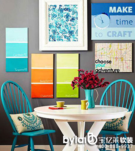 如果家里剩下的只是簡單的白布,覺得失了些許的顏色,擺放起來不如前面好看。既然都動手,那就動的徹底一點吧。如果你剛好會畫一點東西,那就在布上作畫吧,不需要太復(fù)雜,簡單的顏色渲染就好。如果你不善于作畫,那就動手在白布上繡一點花樣上去,簡單的女紅應(yīng)該沒問題。然后隨意組合擺放在墻面上,別致又好看的背景墻怎么會不討人喜歡。