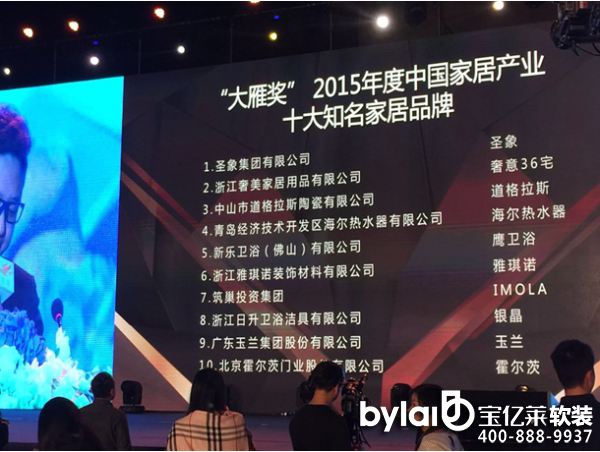 奢意36宅作為中國(guó)整體軟裝行業(yè)領(lǐng)軍品牌,今年首次斬獲大雁獎(jiǎng),與圣象、海爾、玉蘭、Imola、道格拉斯、雅琪諾等品牌一道獲得“大雁獎(jiǎng)——2015年度中國(guó)家居產(chǎn)業(yè)十大知名品牌”殊榮。
