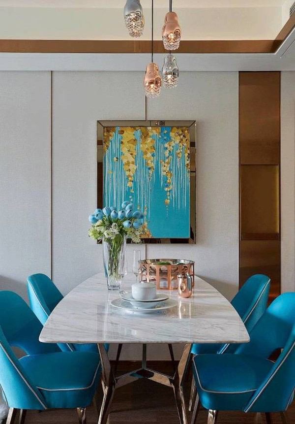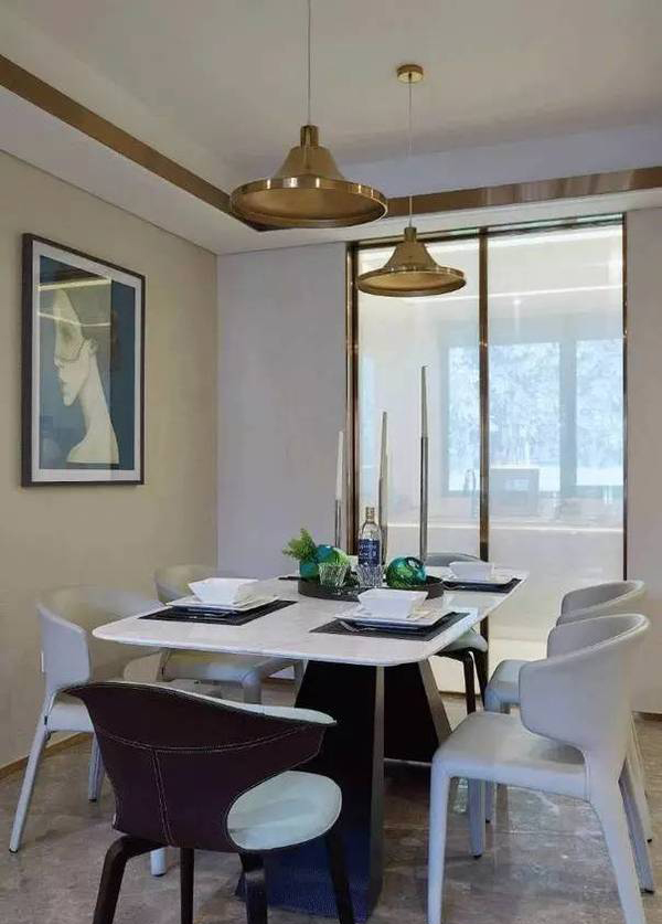 餐廳作為聚會(huì)的公共區(qū)域,一場(chǎng)饕餮私宴即將打開味蕾。室內(nèi)每一處室內(nèi)動(dòng)線都經(jīng)過精心的規(guī)劃,金屬裝飾讓餐廳更為摩登和時(shí)尚。