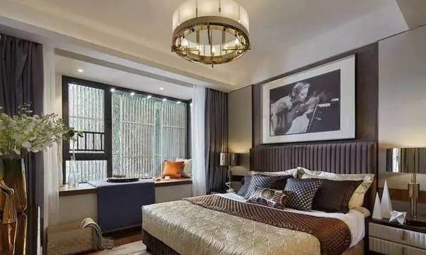 臥室是客廳風(fēng)格的延續(xù),彌漫著輕奢韻味又帶有東方色彩。飄窗為整個(gè)空間設(shè)計(jì)增色加分,除了具備休憩的基本功能,這里還可以是賞景茶座,亦或是一隅輕松愜意的閱讀空間。