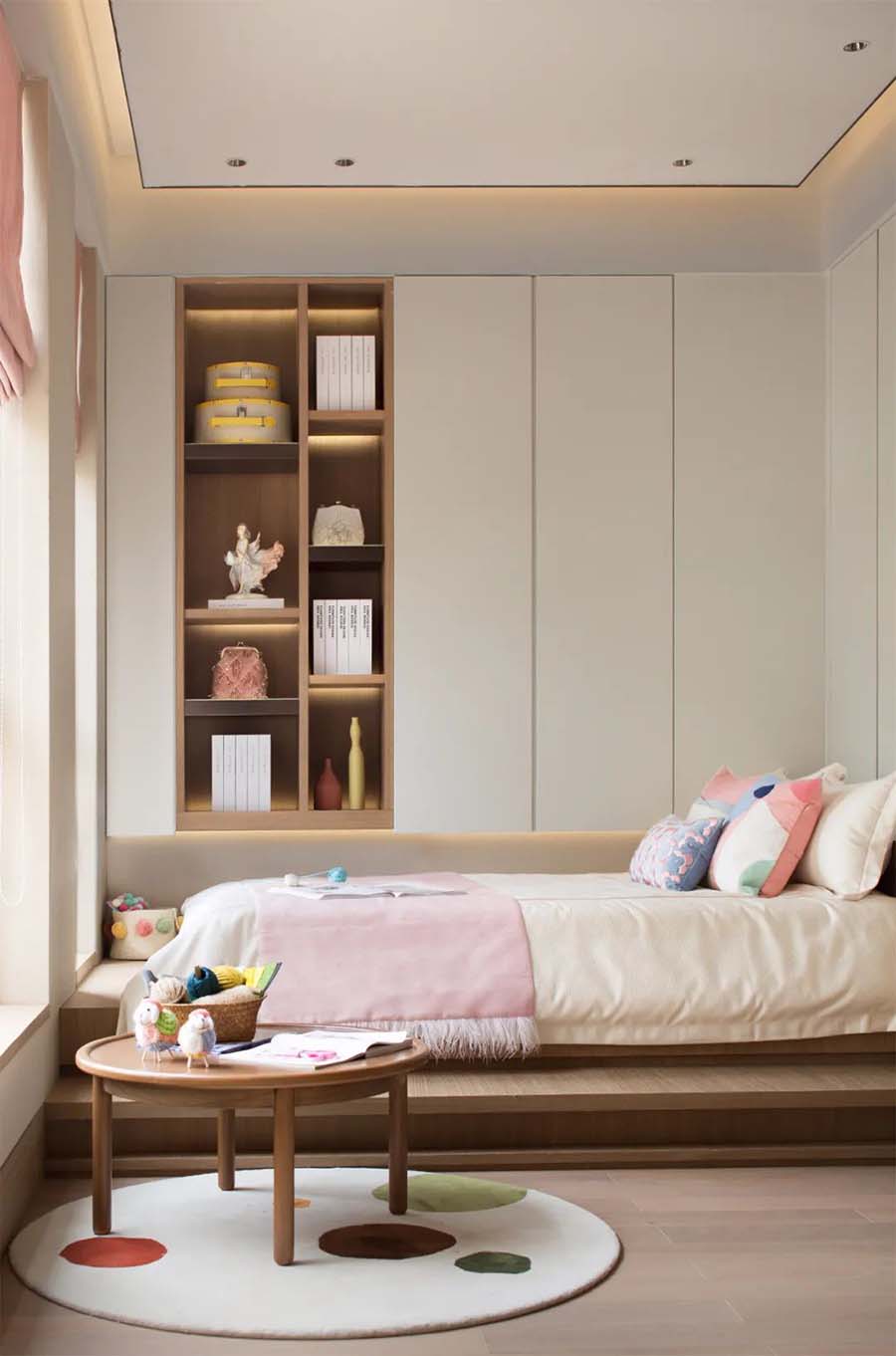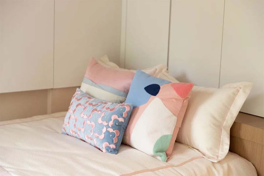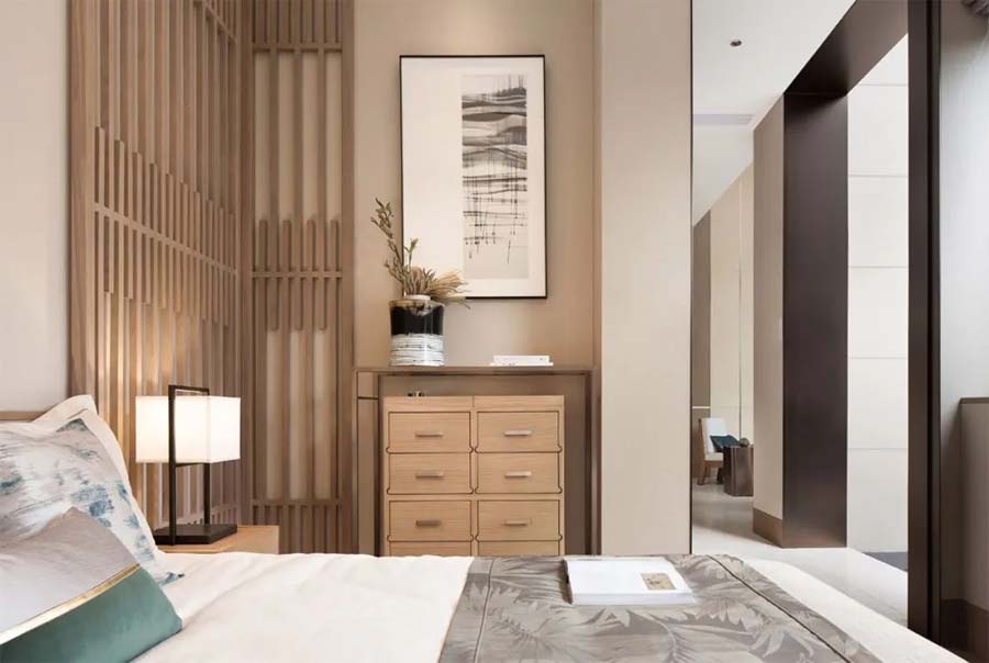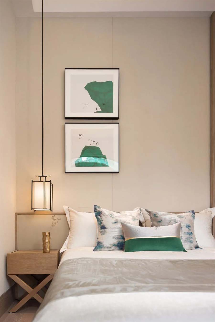 與“萬綠河源”的“湖綠”相得益彰,老人房以雅綠點(diǎn)綴,抱枕、掛畫、裝飾物件,呈現(xiàn)出細(xì)微的色彩表情,低調(diào)而又不失雅致。