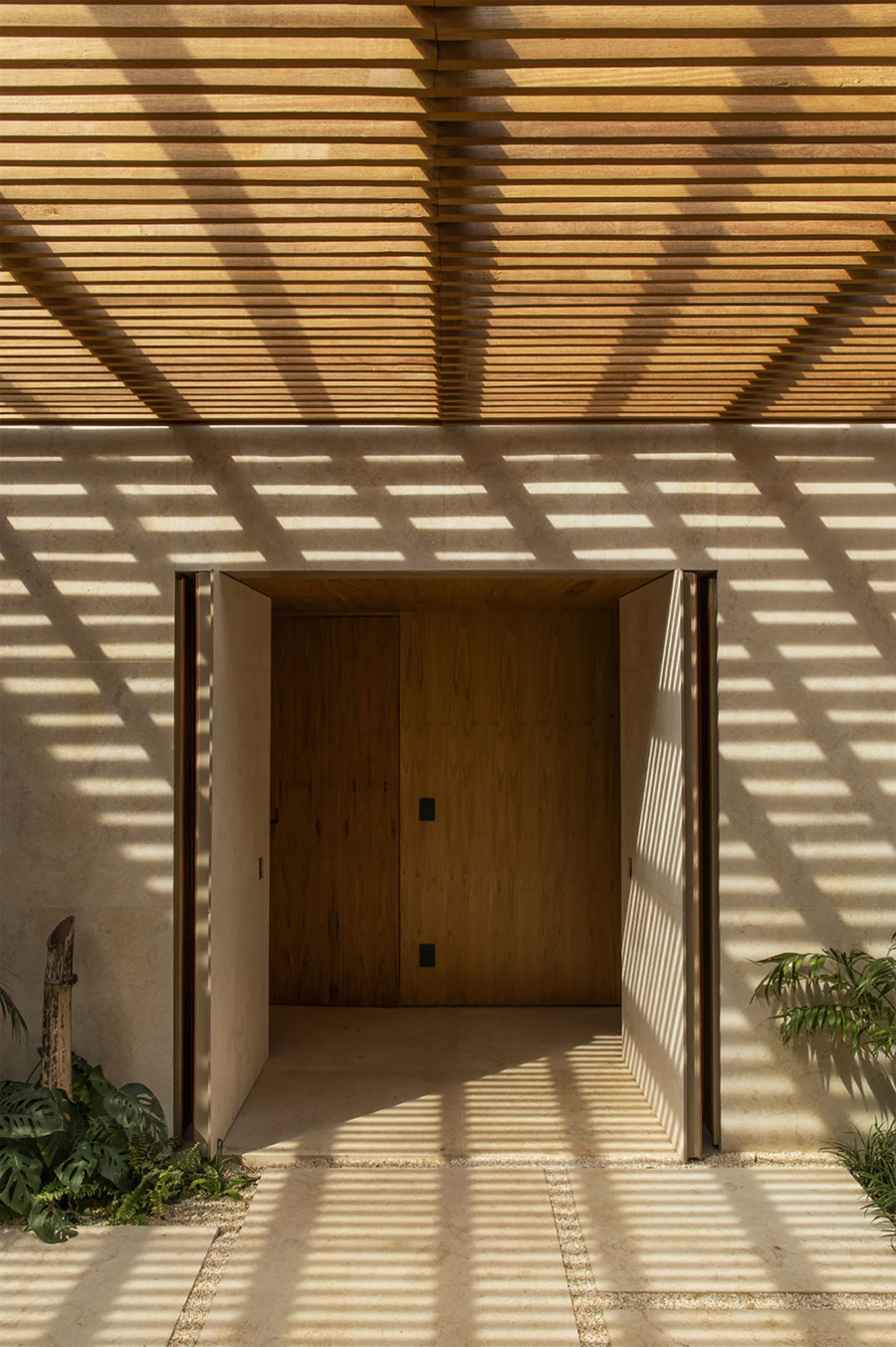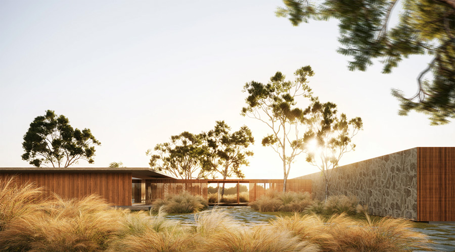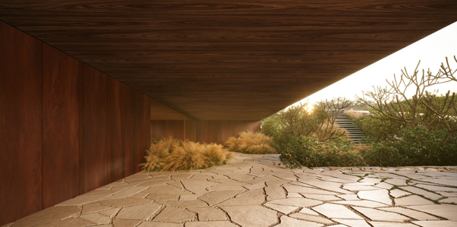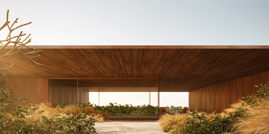 它是一座純粹的極簡建筑,可自然開啟的旋轉(zhuǎn)門,構(gòu)成建筑中最重要的開敞元素,也創(chuàng)造出朦朧的建筑藝術(shù)。在“大地色”的基調(diào)下,融合了木材等溫潤、天然石材的粗獷與質(zhì)樸,混凝土的莊嚴(yán),野性十足的景觀設(shè)計(jì)等元素,營造建筑與自然的和諧美。