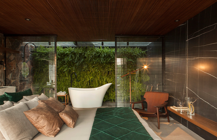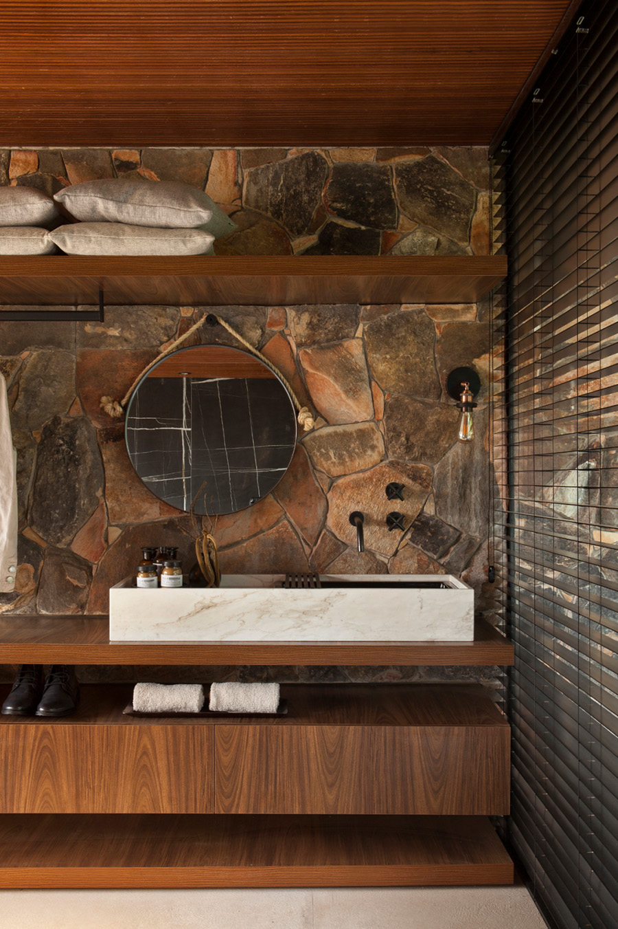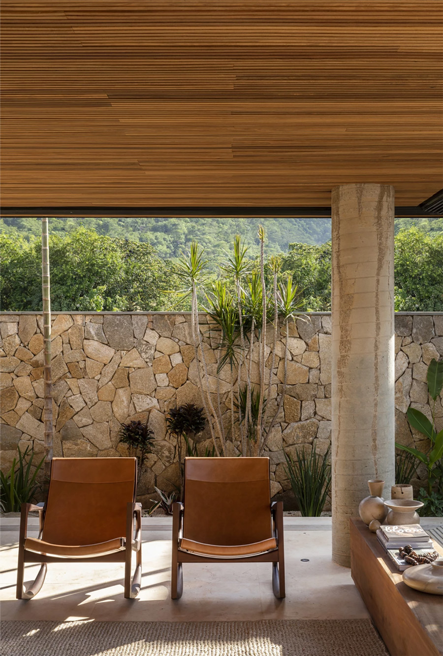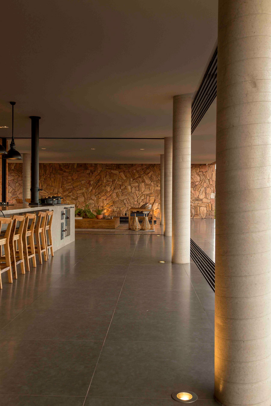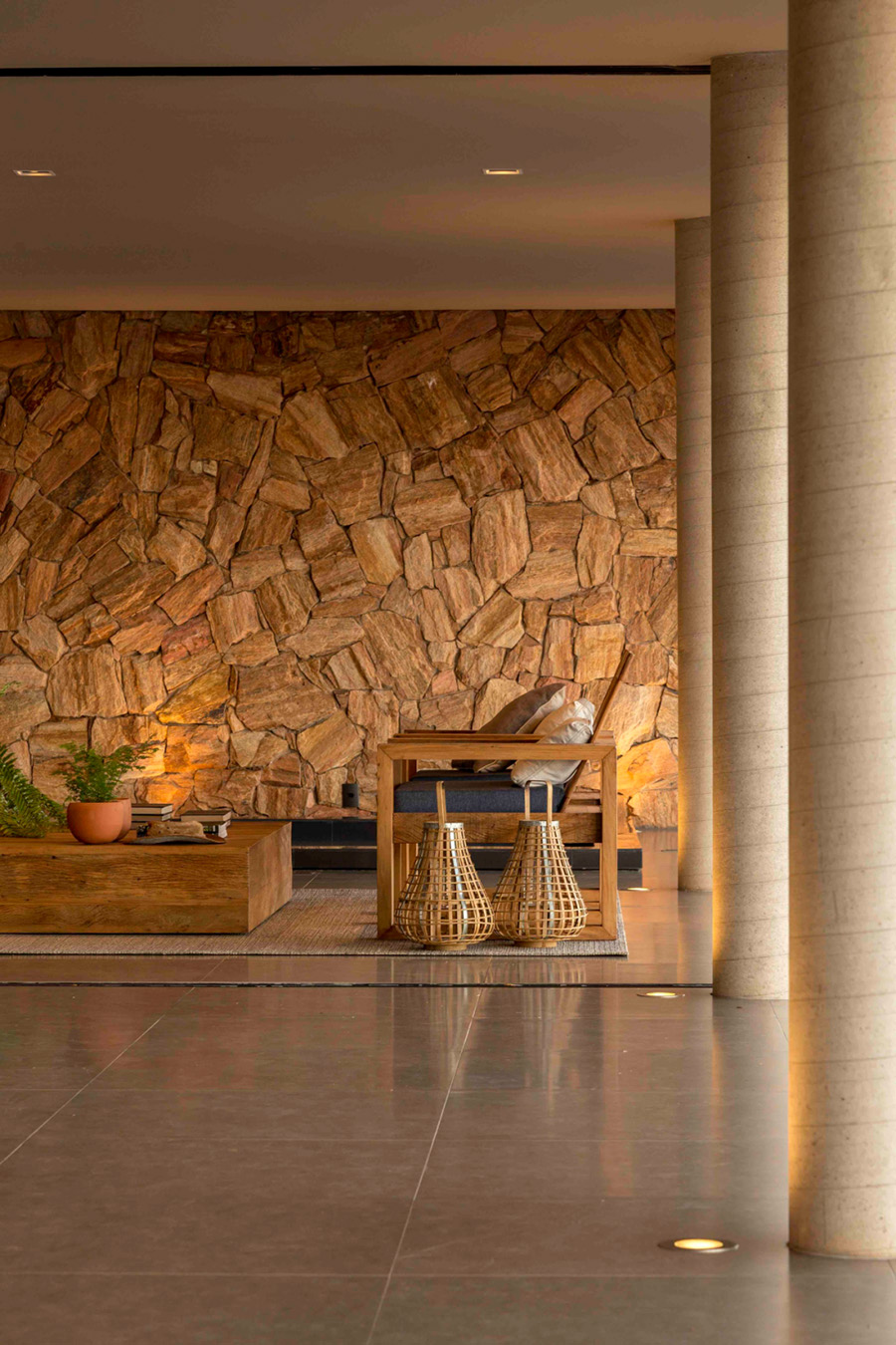 內(nèi)部軟裝由巴西著名設(shè)計(jì)師Jader Almeida、Paulo Alves和奧地利設(shè)計(jì)師Martin Eisler等設(shè)計(jì),以及未經(jīng)雕琢的石墩,創(chuàng)造出自然質(zhì)樸與精致生活的巧妙融合。