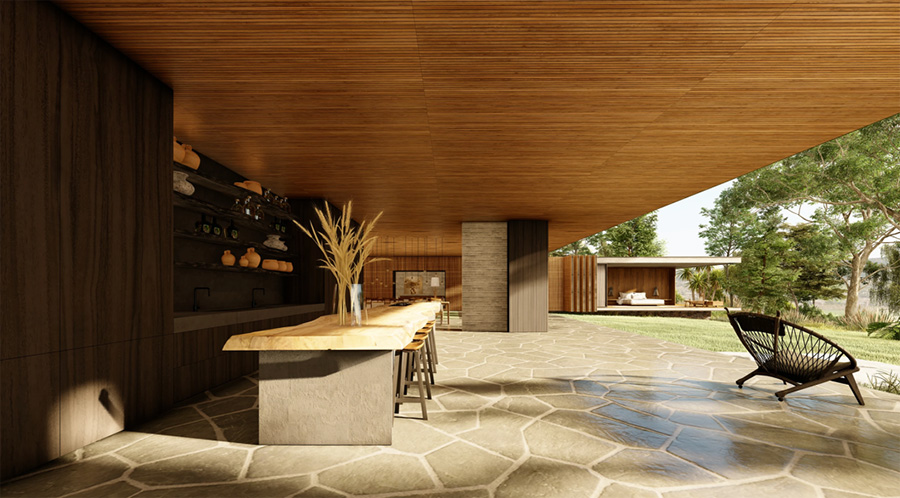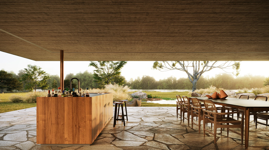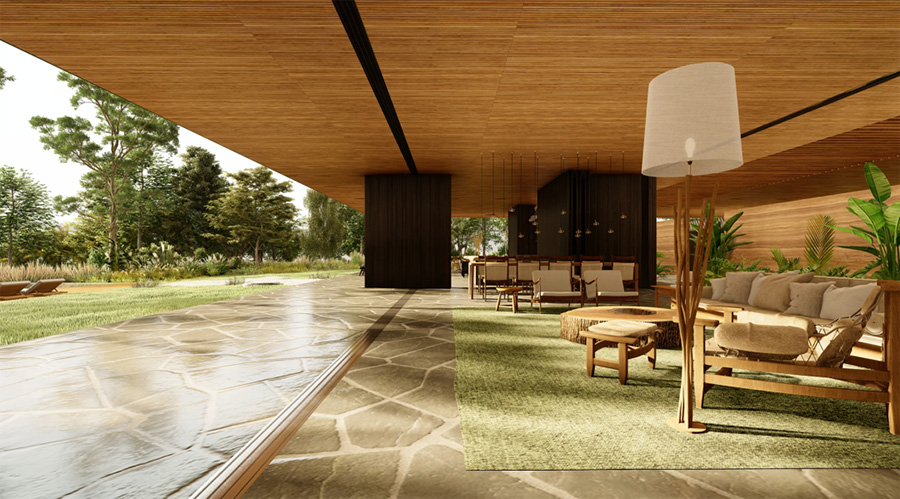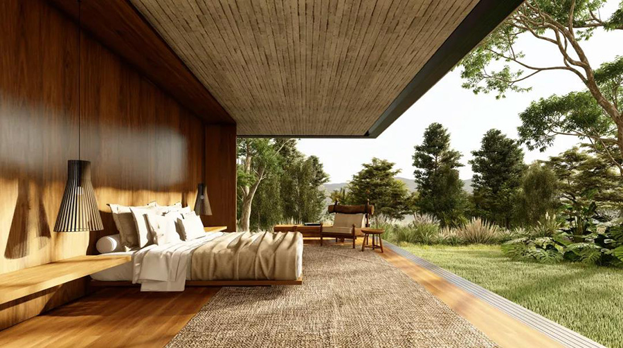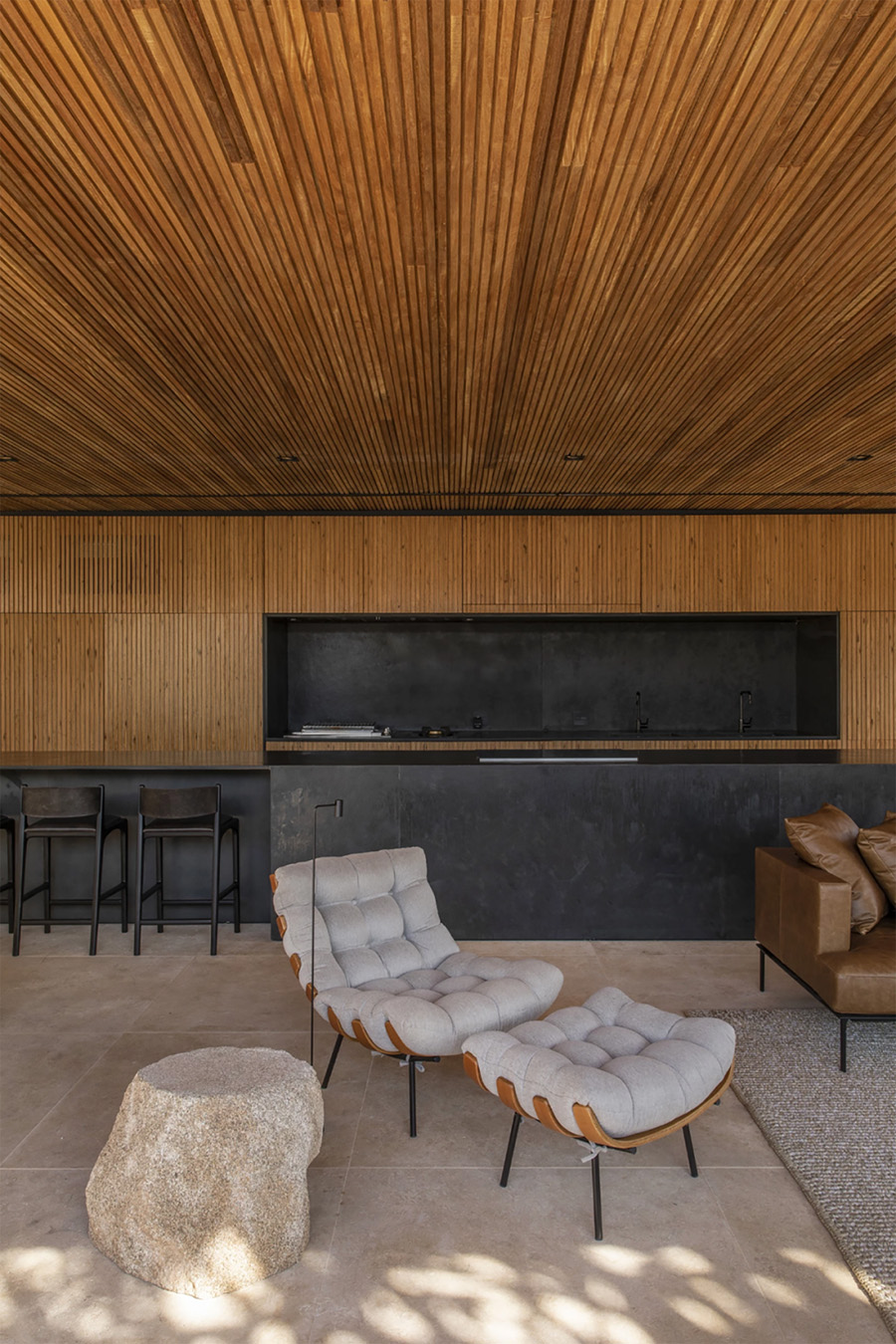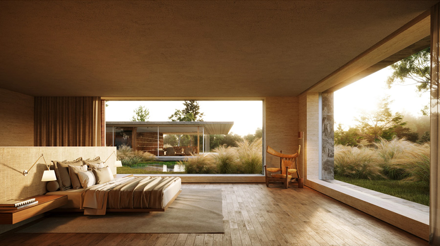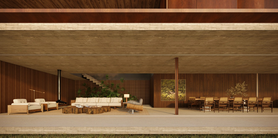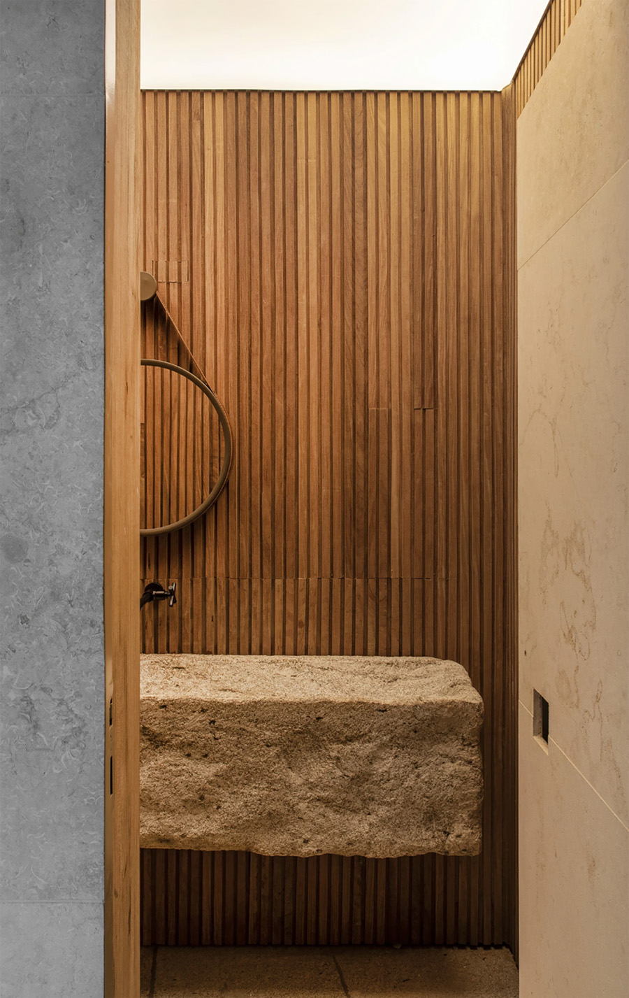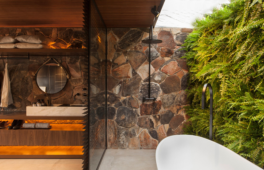 內(nèi)部軟裝由巴西著名設(shè)計(jì)師Jader Almeida、Paulo Alves和奧地利設(shè)計(jì)師Martin Eisler等設(shè)計(jì),以及未經(jīng)雕琢的石墩,創(chuàng)造出自然質(zhì)樸與精致生活的巧妙融合。