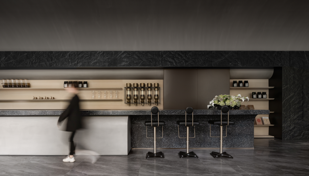 咖啡店是實(shí)現(xiàn)宜居性與度假感的空間載體。既能兼顧項(xiàng)目前期的地產(chǎn)銷售功能,也能在更長遠(yuǎn)的未來成為業(yè)主私人生活與城市文化日常相互疊交與轉(zhuǎn)換的中間地帶。它介于日常與度假之間,隱匿在市井與街頭之內(nèi),是具體日常生活的延伸,是喧囂與靜謐的自然過渡。