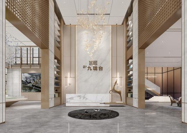 (1)接待區(qū)是項(xiàng)目形象展示的重要組成部分,它包括接待臺、接待背景墻與家具燈具道具等。接待臺與背景墻應(yīng)莊重大氣,代表項(xiàng)目的氣質(zhì)與風(fēng)范。接待臺不宜過高,體現(xiàn)親和力,便于使用,包括接待人員接待、登記、派發(fā)樓盤資料等。