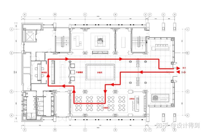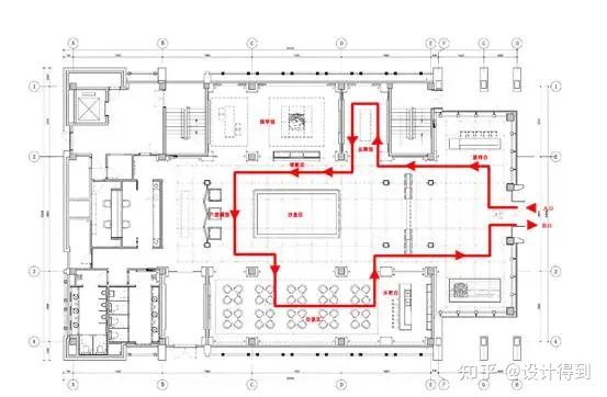 售樓處的動線設(shè)計考慮的是客人進門所需要的服務(wù)順序。