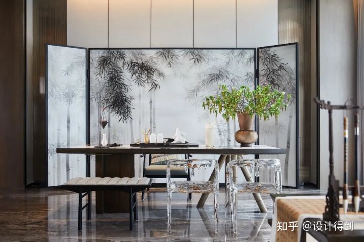設(shè)計師的靈感來源:自然界的石、水、木,并融入了金屬,在意境亞洲的主導氛圍之下,尋求更多的現(xiàn)代情致。