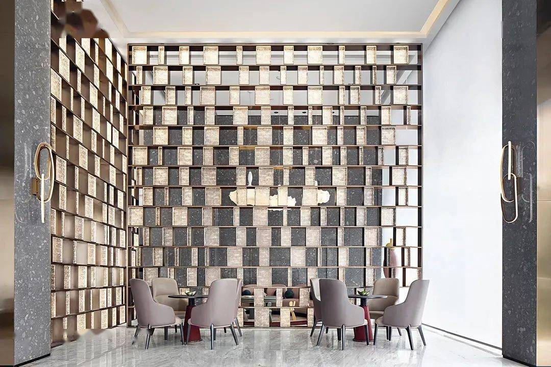 高隔斷,在售樓處等大型項目中起到非常重要的裝飾及功能作用,是一種通頂?shù)?,劃分空間的隔斷形式。高隔斷在分隔空間的同時又不阻斷視線,形成良好的視覺效果。在售樓處的設(shè)計中,高隔斷的樣式靈活多變,不論是玻璃隔斷、面板隔斷還是裝飾柜體作為隔斷,都能給空間帶來非常好的設(shè)計效果。