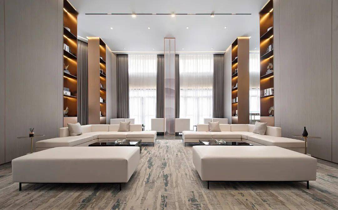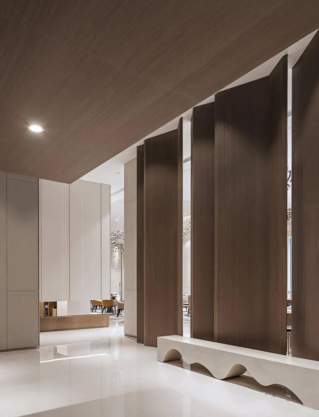 無間設(shè)計創(chuàng)始人吳濱也是對稱手法的大成者,在他的售樓處項目里,隨處可見對稱布局,對稱產(chǎn)生平衡感,而“平衡”是空間意境的關(guān)鍵,不僅如此,對稱還能讓空間更莊重,有儀式感。