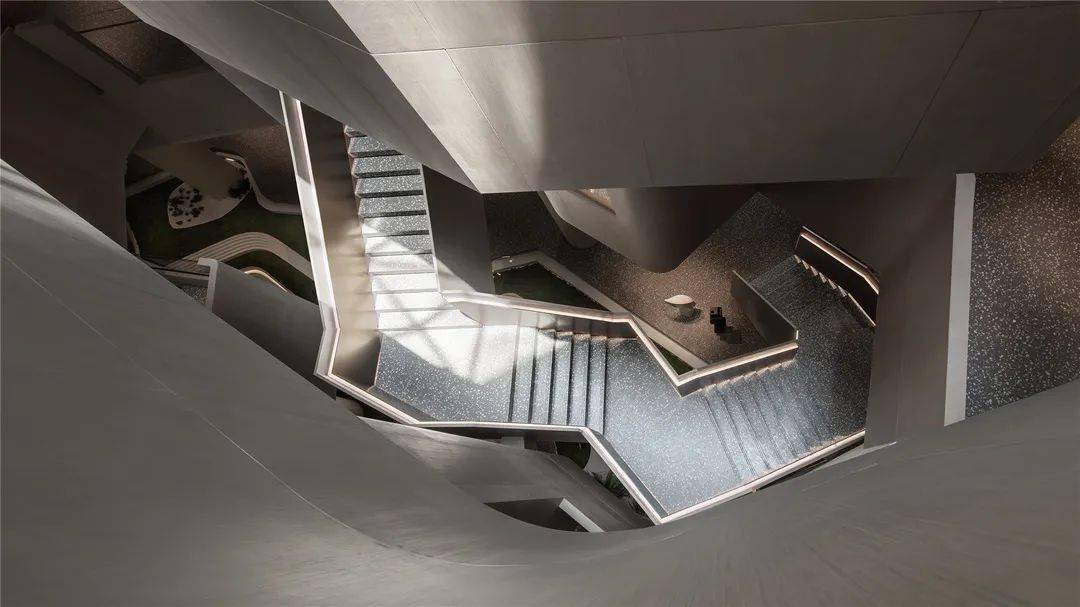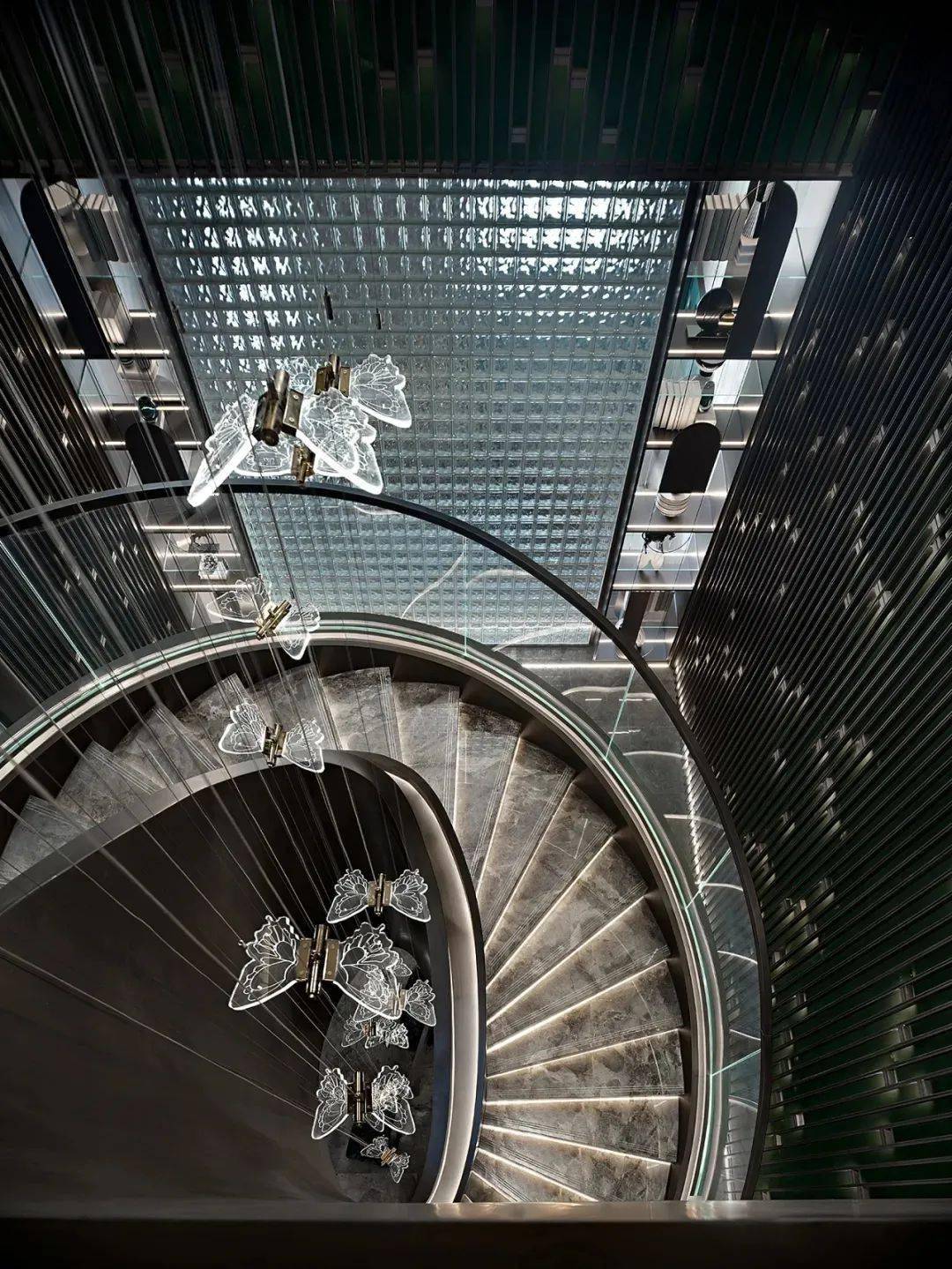 藝術(shù)的美感體現(xiàn)在整體造型和內(nèi)部細節(jié),樓梯作為售樓處設(shè)計中必不可少的大體量裝置,從建筑學(xué)與美學(xué)的角度來看,樓梯同時是上下兩個空間的焦點,也是設(shè)計師最值得發(fā)揮想象的地方。在樓梯的設(shè)計中也經(jīng)常會與藝術(shù)裝置、藝術(shù)吊燈相結(jié)合,打造一處既保留功能性,又充滿觀賞性的樓梯空間。