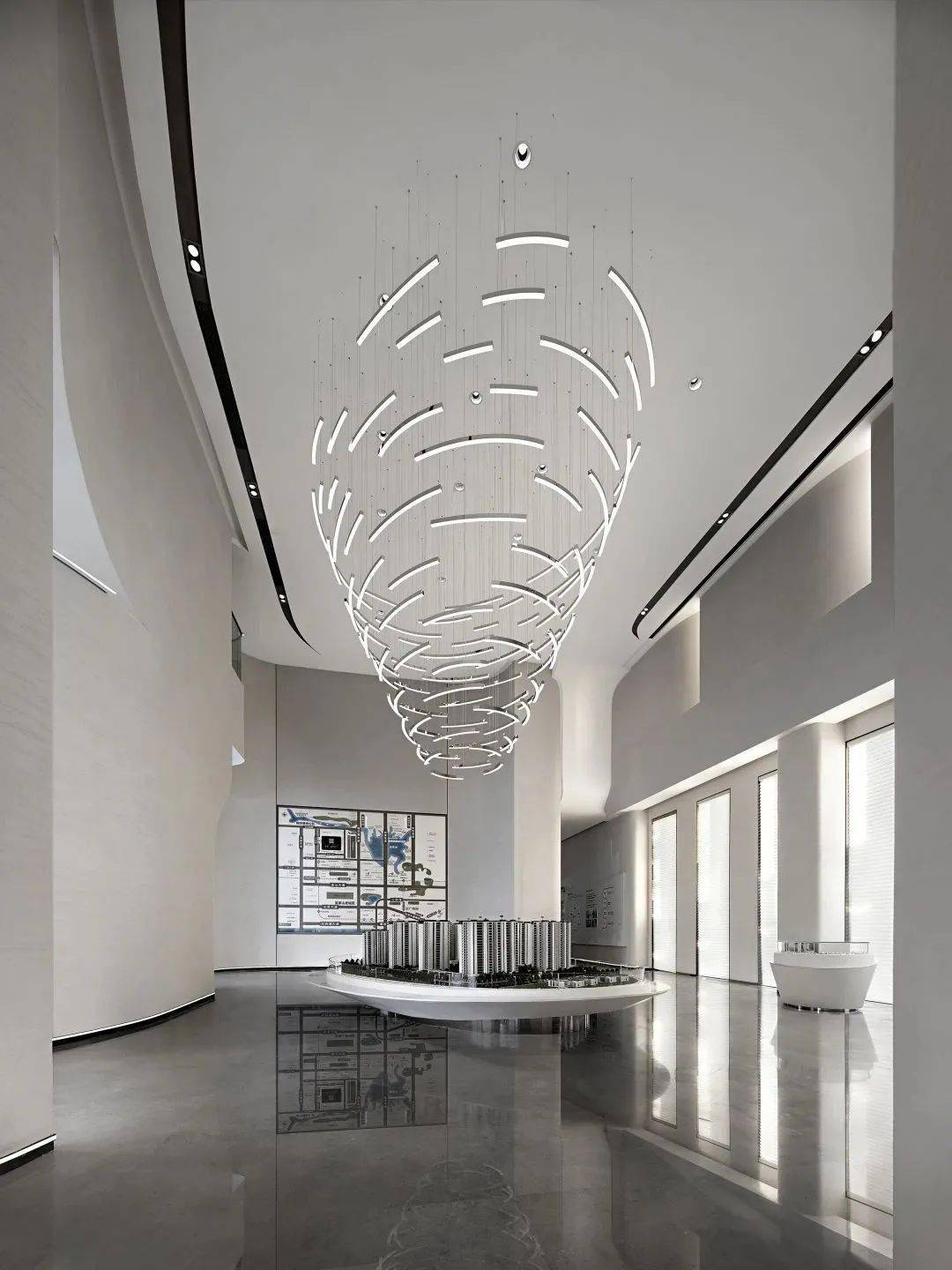 燈光設(shè)計的造價可能只占總造價的一小部分,但卻承載了80%的氛圍營造,再好的空間設(shè)計,也需要燈光氛圍的營造。充滿藝術(shù)性的造型吊燈在售樓處的設(shè)計中不只是起到照明的作用,更是空間提升設(shè)計感的利器。大堂、沙盤區(qū)、洽談區(qū),燈具的妝點都無處不在,不論是藝術(shù)吊燈、壁燈還是落地?zé)?,都各有各的裝飾效果。