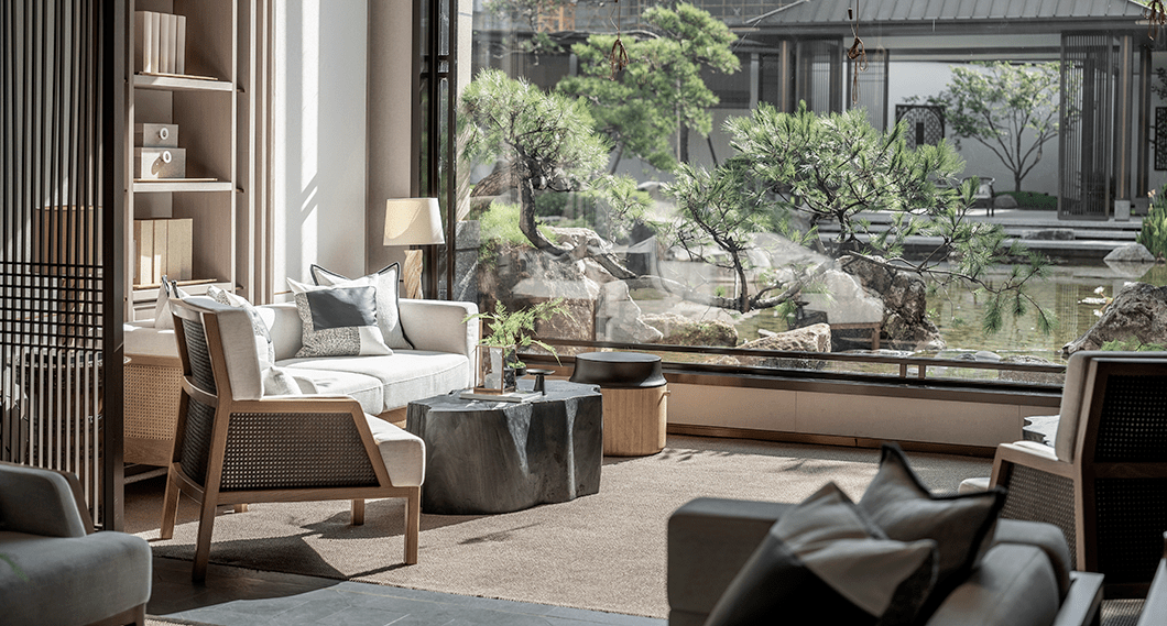 落地窗的通透材質(zhì)不只能吸納更多的陽光,還是窗外四季更替的最好見證,不論是夏看蓮葉滿池,還是冬觀白雪皚皚,都是建筑與自然相輔相成最好的寫照。